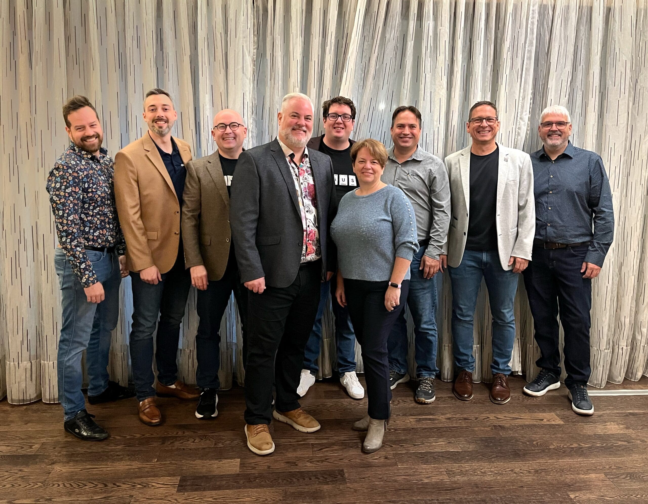 Sur cette photo : Jessy Laflamme, Maxime Larose, Dominic Vézina, Pierre Poulin, Dave Demers, Kathy Larochelle, Christian Tanguay, Jean Magny et Jasmin Doyon.